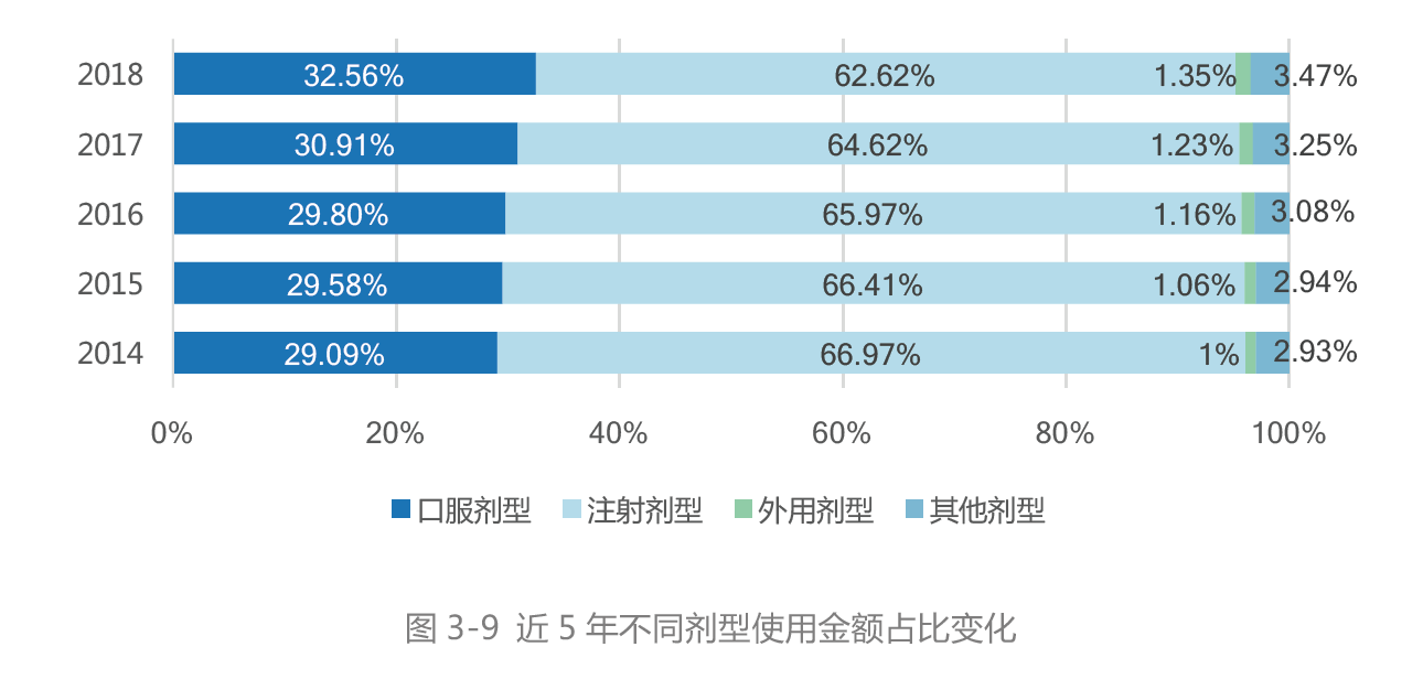 使用金额增速趋缓,口服剂型实现双升