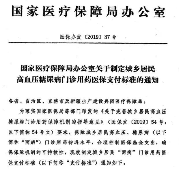 这是在业内流传的国家医保局等部门为落实《关于完善城乡居民高血压糖尿病门诊用药保障机制的指导意见》(以下简称《指导意见》)要求,就城乡居民“两病”门诊用药医保支付标准而制定的最新配套文件。