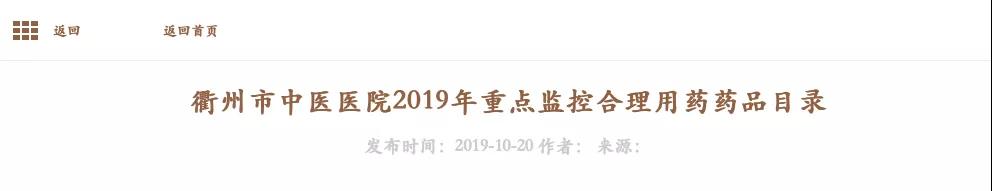 近日,浙江衢州市中医医院在其官方网站上,发布了《衢州市中医医院2019年重点监控合理用药药品目录》。