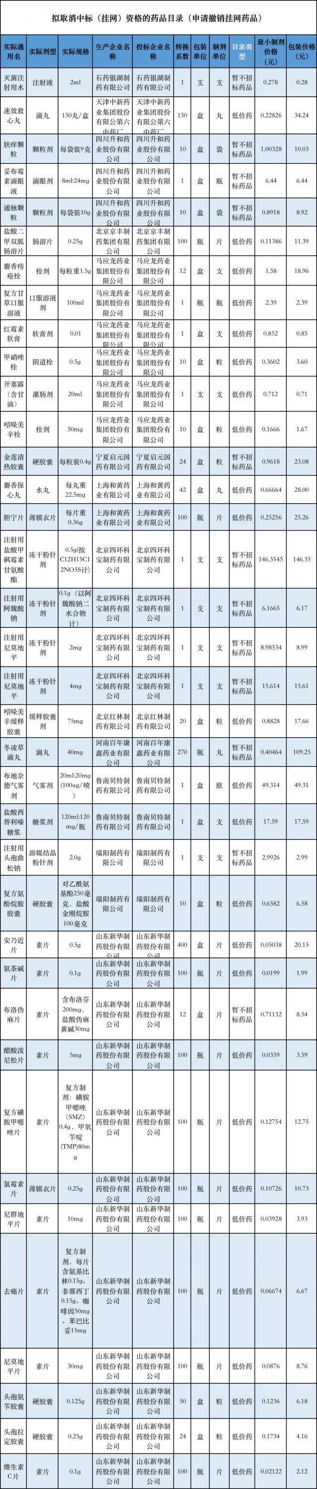 此外,马应龙药业的麝香痔疮膏、复方甘草口服溶液、重庆药友的阿法骨化醇片、华润赛科的盐酸特拉唑嗪片等166个产品申请撤销挂网。
