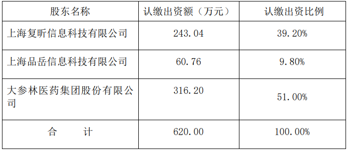 据了解,江海大药房成立于2008 年6月25日,注册资本为620万。截至 2019 年11月6日,江海大药房的股权结构如下: