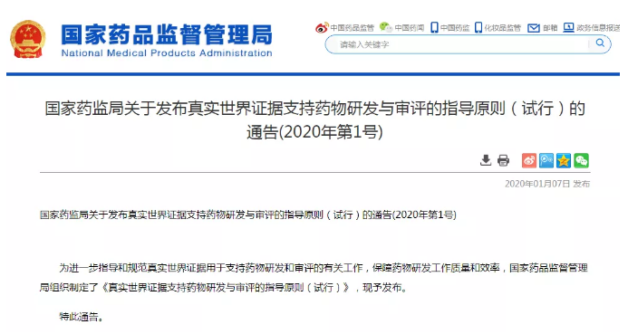 医药网1月8日讯 1月7日,《国家药监局关于发布真实世界证据支持药物研发与审评的指导原则(试行)的通告》(2020年第1号)挂网(下称《指导原则》)。去年5月,国家药监局曾发布《真实世界证据支持药物研发的基本考虑(征求意见稿)》(下称《意见稿》),经过数月广泛征求意见,最终形成《指导原则》。