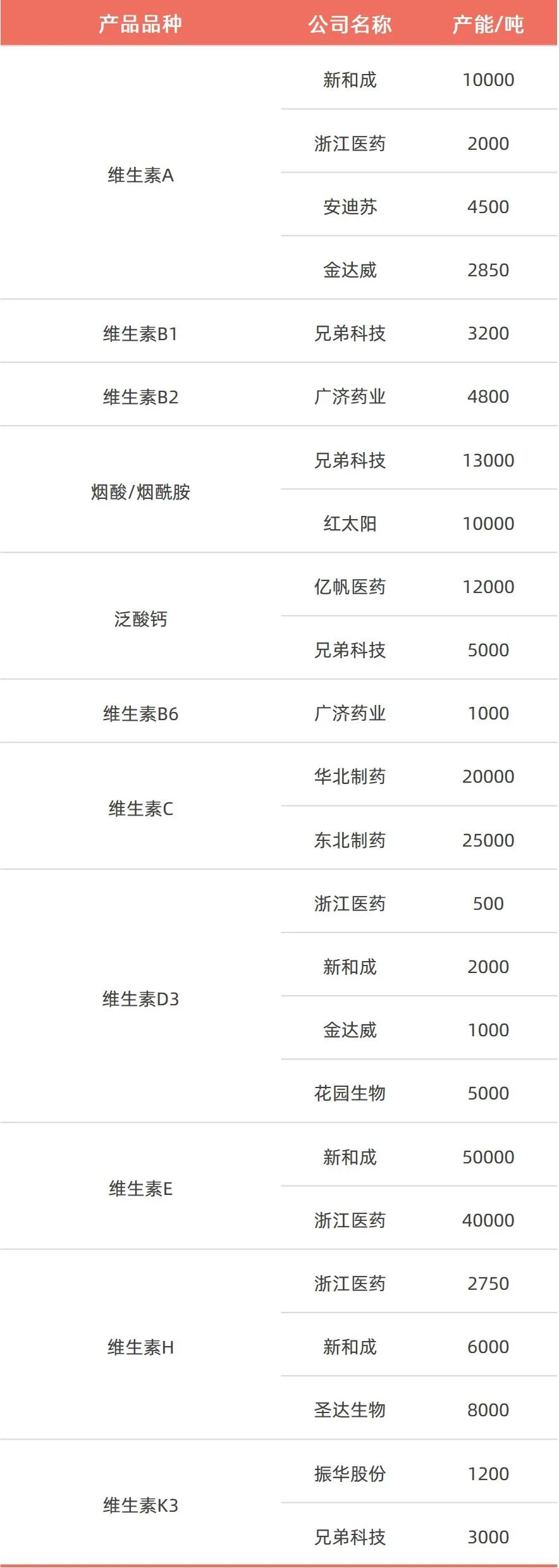 国内各类维生素产品厂家