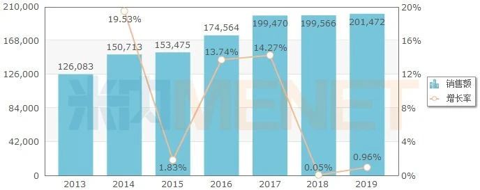 近年湖南省公立医院全身用抗感染化药销售情况(单位:万元)