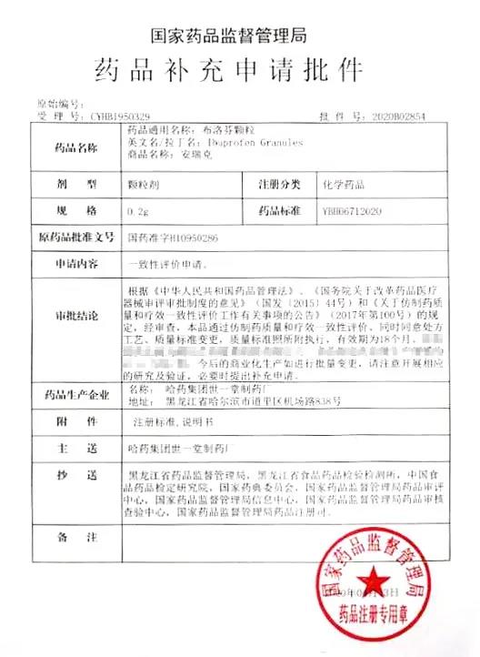 2020年4月20日,爱游戏体育集团世一堂制药厂支柱产品“布洛芬颗粒”通过了仿制药质量和疗效一致性评价,获得国家药品监督管理局颁发的药品补充申请批件,成为股份公司第三个通过一致性评价的品种。